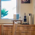 - ❓¿Hay una cocina disponible en el apartamento para uso de los huéspedes?Sí, el apartamento está equipado con una pequeña cocina y ofrece también un horno de microondas, un hervidor eléctrico y menaje de cocina.
